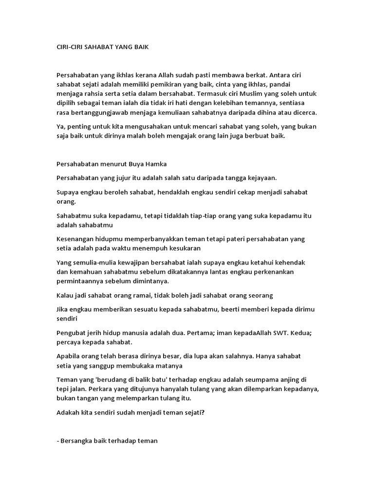 Kepentingan amalan tolong menolong. CIRI CIRI KAWAN YANG BAIK STATUS WA TERBARU Kawan yg baik itudi depan kamu berani ngomongin kekurangan kamu mengkritik kamu. Kawan yang baik sifatnya suka mendengar luahan kita dengan baik.